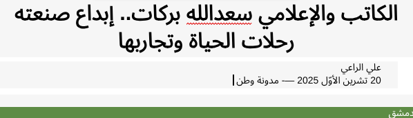 “لم يكن الإعلامي والكاتب سعد الله بركات مجرد اسم يمرّ في عناوين المقالات أو على صفحات المجلات، بل كان صوتاً صادقاً في المشهد الثقافي العربي، يتتبع خطوات الكلمة الحرة، ويحتفي بأهلها بوفاءٍ نادر وموضوعية لا تشوبها مجاملة، عُرف بركات بحواراته العميقة التي أجراها مع أصوات شعرية عديدة، حيث لم تكن حواراته مجرد أسئلة وأجوبة، بل لقاءات فكرية تنبض بالحياة وتتجاوز السطح إلى جوهر الإبداع.”