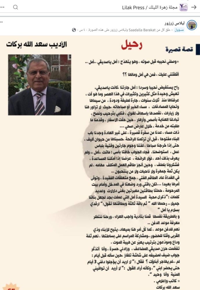 وفي الختامِ، لا يسعُني إلاَّ أن أتوجّهَ بالشّكرِ العميقِ للكاتبِ المبدعِ “سعدالله بركات”، ليس فقط على ما قدّمَه من مضمونٍ إنسانيٍّ مؤثّرٍ، بل على أسلوبِه الكتابيِّ الآخذِ في التّرسُّخِ والتّبلورِ. ففي تجربتِه القصصيّةِ الثّانيةِ، يُثبتُ أنّ الكتابةَ لديه ليستْ مصادفةً عابرةً، بل خيارٌ واعٍ، وحسٌّ فنيٌّ يتقدّمُ بثباتٍ، ويزدادُ قدرةً على الإمساكِ بالتّفاصيلِ، وبناءِ المشهدِ، وتكثيفِ الدّلالةِ دونَ افتعالٍ.