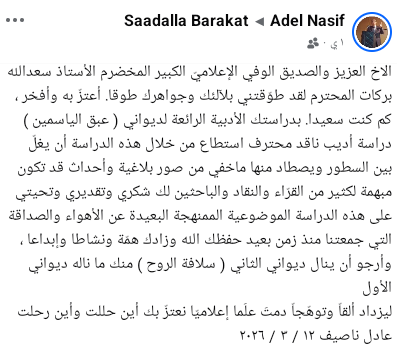 - بعض آراء النقاد بالديوان ،منشورات على صفحات الفيسبوك ، وبعضها وصل إلى صفحة الشاعر ..