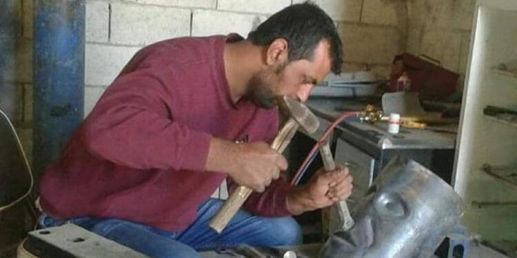 في إصرار على نفض غبار حقبة تنظيم داعش الإرهابي، وتأكيد هزيمته بلا رجعة، يعمل نحات كردي في شمال سوريا على تحويل مخلفات الحرب إلى قطع فنية، ليؤكد أنه في “الفن حياة”.