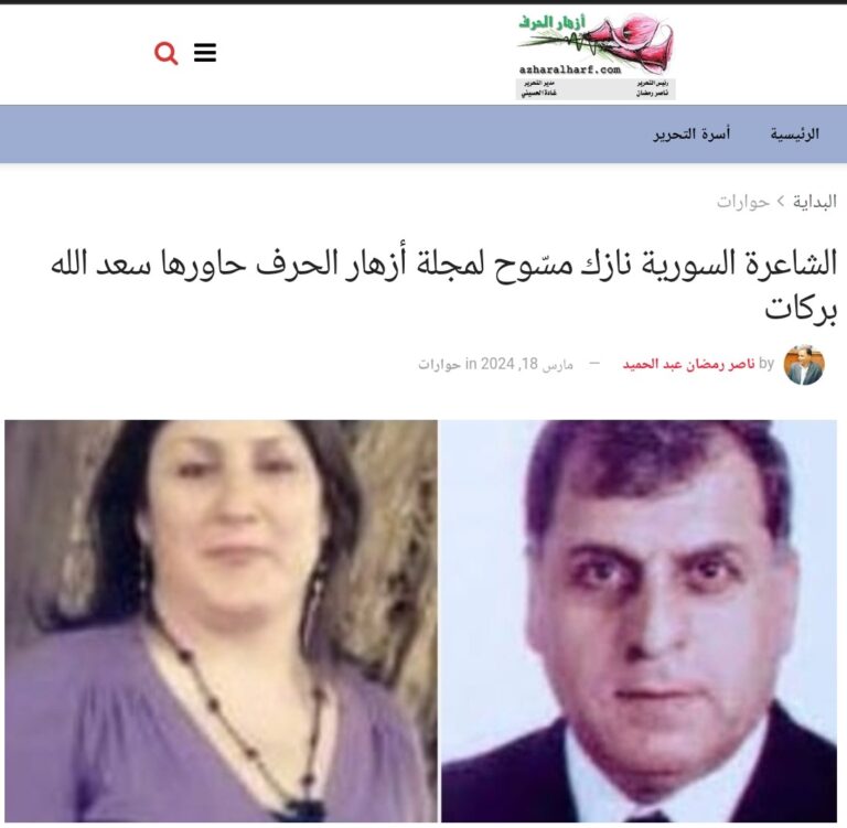 حاورها سعدالله بركات؛ الشاعرة نازك مسّوح :الطبيعة ملهمتي الأولى شجرة زيتون أصيلة لا تغيب نضارتها # عن مائدة المعرفة ، أعطت من قداسة الحرف و ما خلت مكانها فارغا من غار العطاء، هي شجرة من أشجار بلادي، التي أينعت…