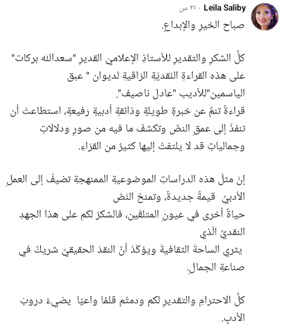 ..عبق الياسمين يفوح شعرا *قراءة بقلم سعدالله بركات